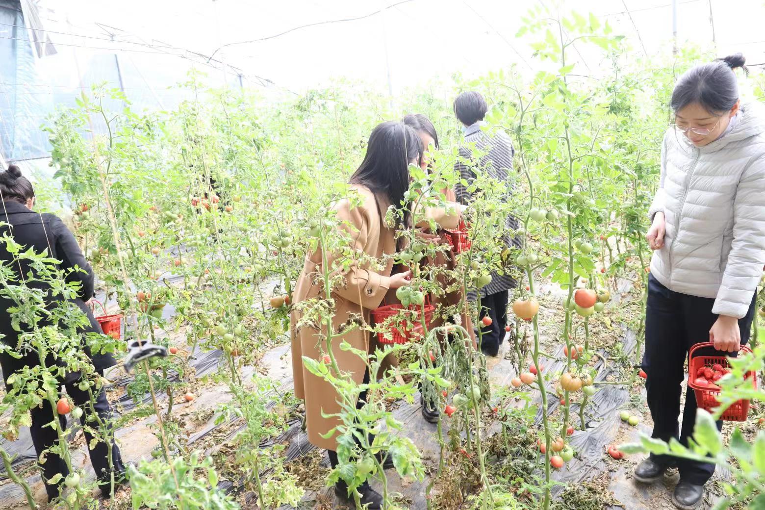 云来仙境洒仙果,仙果红润怡采摘。全体女职工来到集团定点帮扶村开展助农采摘活动,帮助农户采摘西红柿、草莓等,解决农户的燃眉之急。活动现场,女职工们欢声笑语、兴致高昂,撸起袖子弯下腰,穿梭在果园间,你摘我装,分工协作,干劲十足。不多时,一篮篮果蔬就采摘完毕。果蔬的香甜为这个节日增添了不一样的风采。此次采摘,女职工们不仅体验了田园采摘的乐趣、感受了清新的田园气息、分享了劳动收获的喜悦,更用实际行动推进消费扶贫,帮助农户拓宽销售渠道,以购代销,消费助农,为乡村振兴贡献了自己的一份力量。