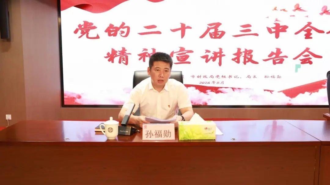 孙福勋在宣讲报告中,全面介绍了党的二十届三中全会有关情况,深刻阐明了全会的重大意义,深入阐释了进一步全面深化改革的总目标、重大原则和重要要求,系统解读了全会关于经济体制改革、财税体制改革、国资国企改革等一系列重大改革举措。他强调,要以高度的政治自觉和强烈的使命担当学习好宣传好贯彻好党的二十届三中全会精神,切实把思想和行动统一到以 习近平同志为核心的党中央决策部署上来,深入思考学、全面对标谋、联系实际干,争当全面深化改革的“先行者”“践行者”“示范者”,推动全会精神在自拍 落地生根、开花结果,不断提升服务支持全市实体经济发展的能力,努力在奋进万亿新征程、加快打造绿色低碳高质量发展示范城市中作出更大贡献。