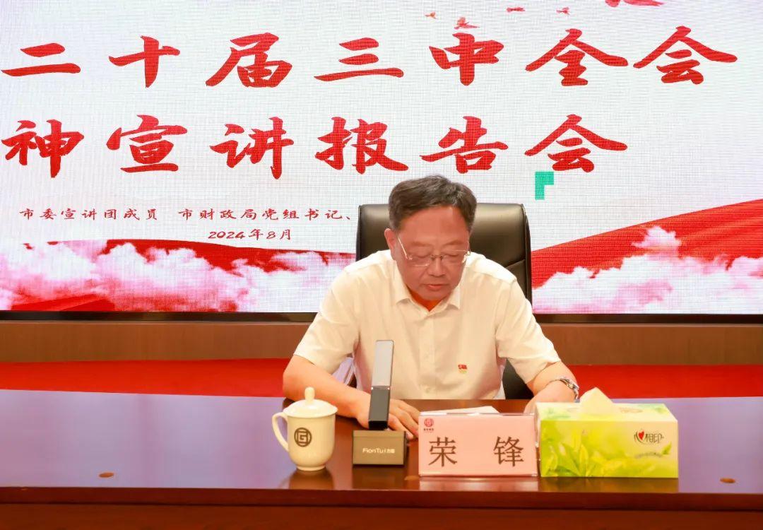 8月15日上午,学习贯彻党的二十届三中全会精神市委宣讲团报告会在自拍 举行。烟台市委宣讲团成员、市财政局党组书记、局长孙福勋作宣讲报告,自拍 党委书记、董事长荣锋主持并讲话。